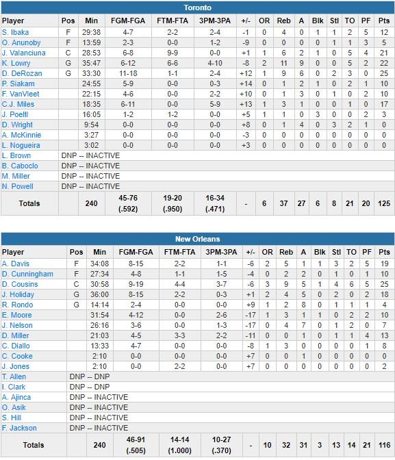 New Orleans Pelicans – Toronto Raptors 116-125