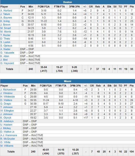 Ce n’est néanmoins pas passé loin pour les hommes de Brad Stevens, revenus à un point 91-90 à 3’14 de la fin suite à un 13-0. Mais c’est après ce dernier que Waiters a pris les choses en main pour Miami en scorant les 6 points suivants, sur deux 3-points, dont un rentré en plusieurs fois. Revenu à +7 (97-90) grâce à ses deux gros shoots, le Heat réussira à tenir jusqu’au bout.