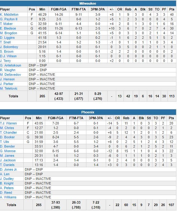 Phoenix Suns – Milwaukee Bucks 107-113
