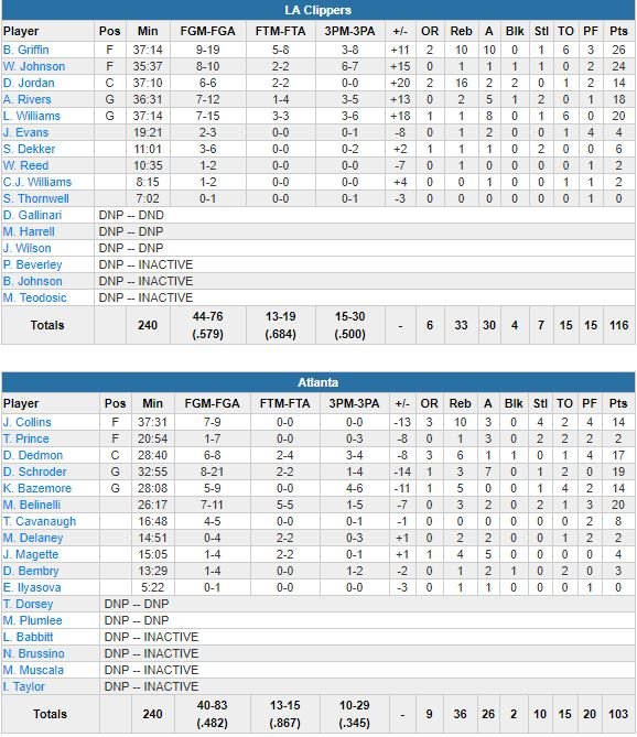 Atlanta Hawks – Los Angeles Clippers 103-116