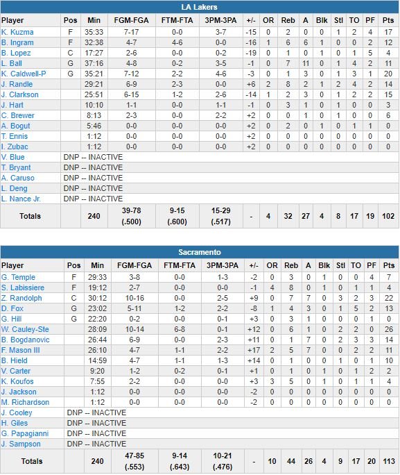 Sacramento Kings – Los Angeles Lakers 113-102