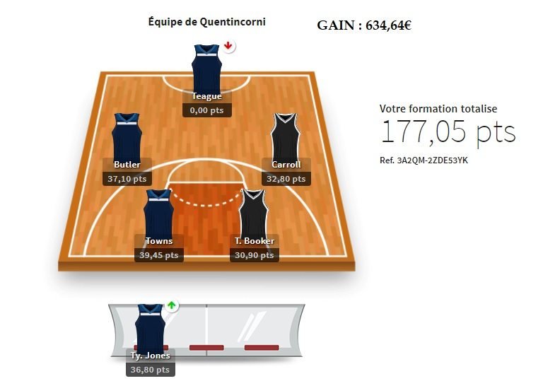 C’est Quentincorni qui décroche la première place avec 634.64€ de gains. A noter que Clem de l’équipe Basket Infos termine elle 5ème avec 122.54€ de gains.