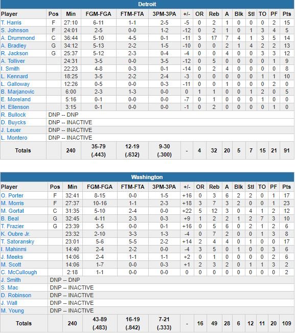 Washington Wizards – Detroit Pistons 109-91