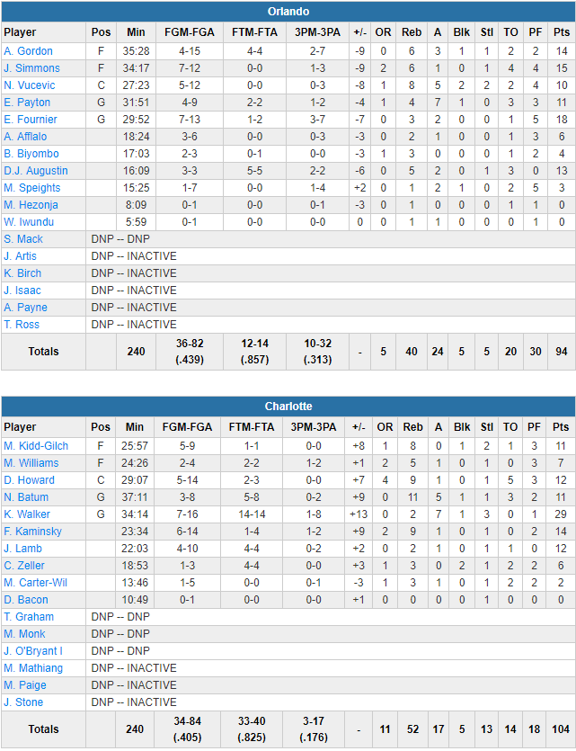 Charlotte Hornets – Orlando Magic 104-94