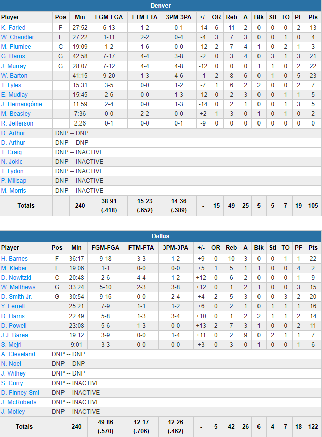 Dallas Mavericks – Denver Nuggets 122-105