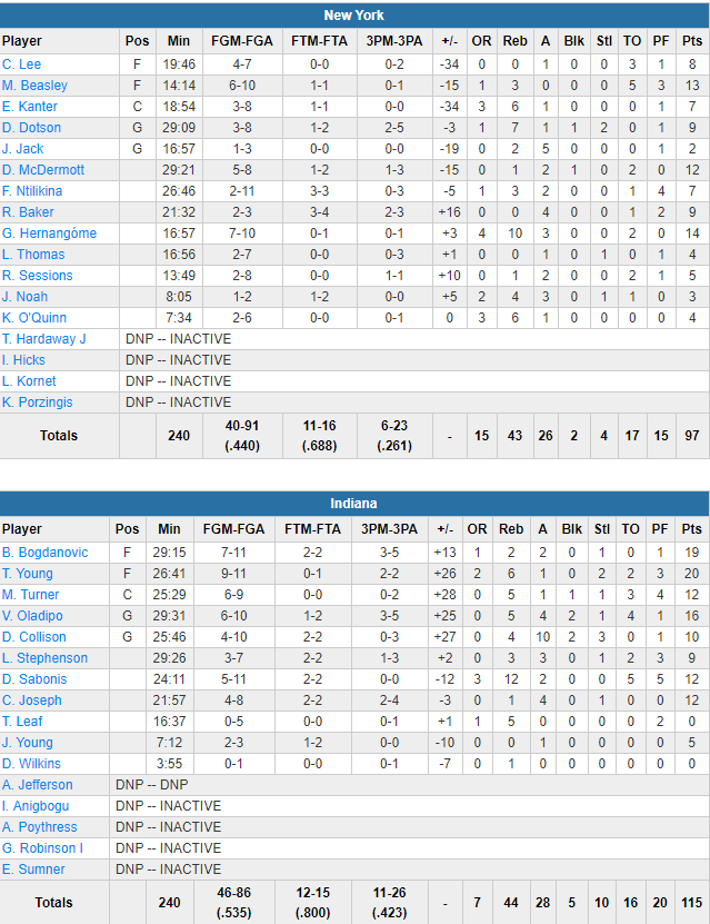 Indiana Pacers – New York Knicks 115-97