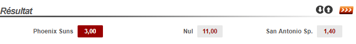 Pour le pari un peu moins risqué, on va miser sur l’affiche de la nuit entre les Suns et les Spurs. A première vue les Spurs sont les grands favoris de ce match à Phoenix, qui est en plus privé de Devin Booker, mais Gregg Popovich a décidé de mettre au repos Pau Gasol, Manu Ginobili, Tony Parker et Danny Green est absent. Le bon moment pour un exploit des Suns ? Au vu de la cote (3)on peut tenter le coup et miser sur une victoire des Suns dans le temps réglementaire, pour un gain potentiel de 200€.