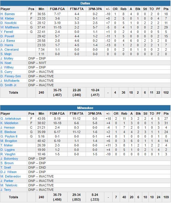 Milwaukee Bucks – Dallas Mavericks 109-102