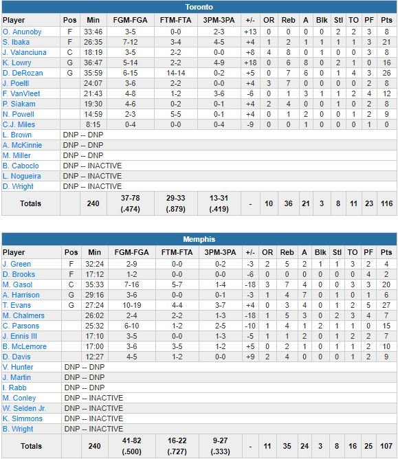 Memphis Grizzlies – Toronto Raptors 107-116