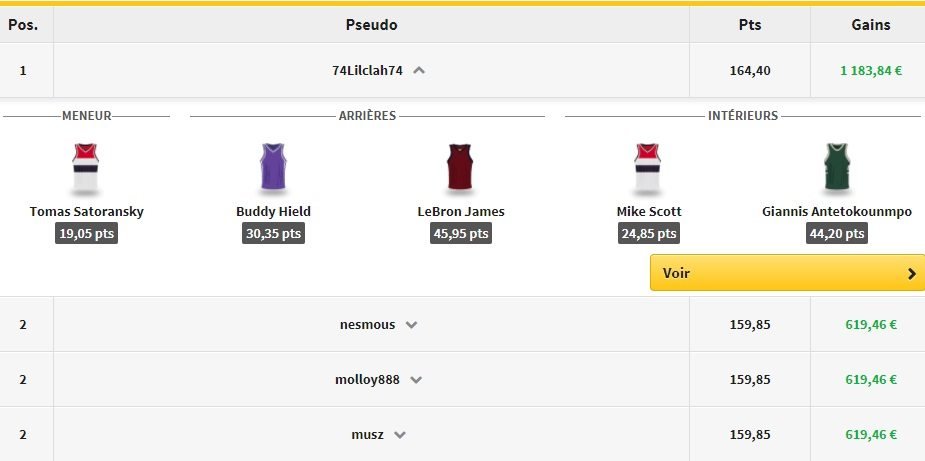 Retour sur les résultats de la soirée du Jeu de l’Entraîneur de Winamax (Pour en savoir plus c’est ici), où il y a encore eu beaucoup de participants pour le contest à 2€ puisqu’il y a eu 4 497 équipes inscrites et 6 746 € à la clé !
