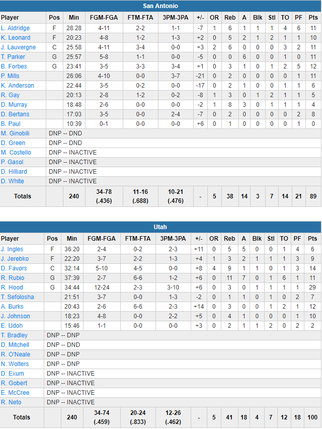 The Spurs opened the third quarter with an 11-1 run as LaMarcus Aldridgewarmed up and cut the lead to two. San Antonio answered each time the Jazz tried to pull away before Hood finally sealed it.