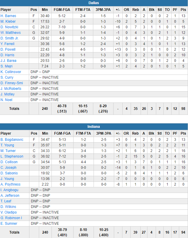 Indiana Pacers – Dallas Mavericks 94-98