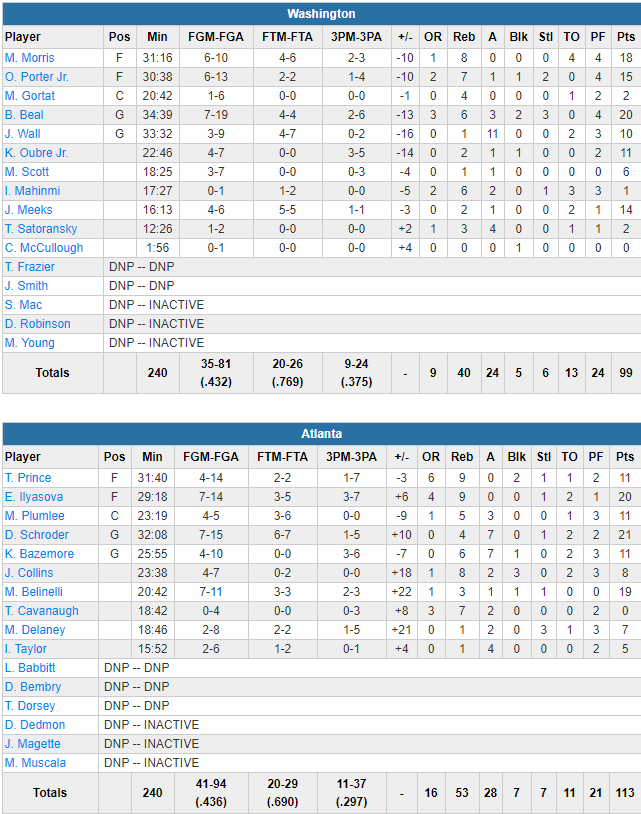 Atlanta Hawks – Washington Wizards 113-99