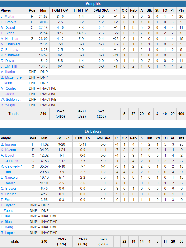 Los Angeles Lakers – Memphis Grizzlies 99-109
