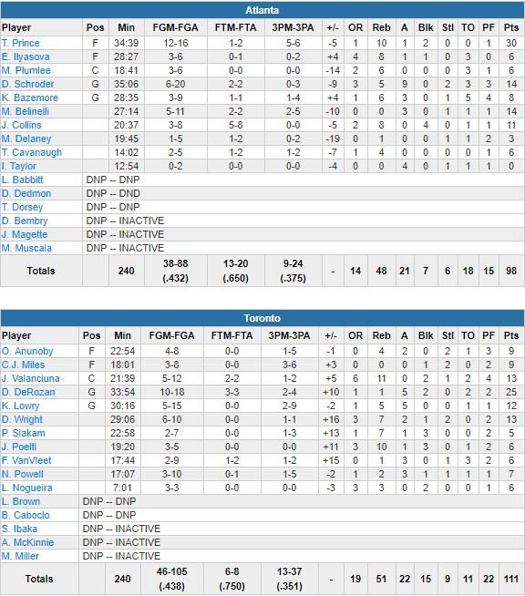 Toronto Raptors – Atlanta Hawks 111-98