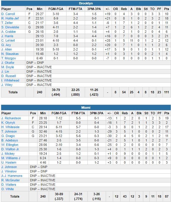 Miami Heat – Brooklyn Nets 87-111