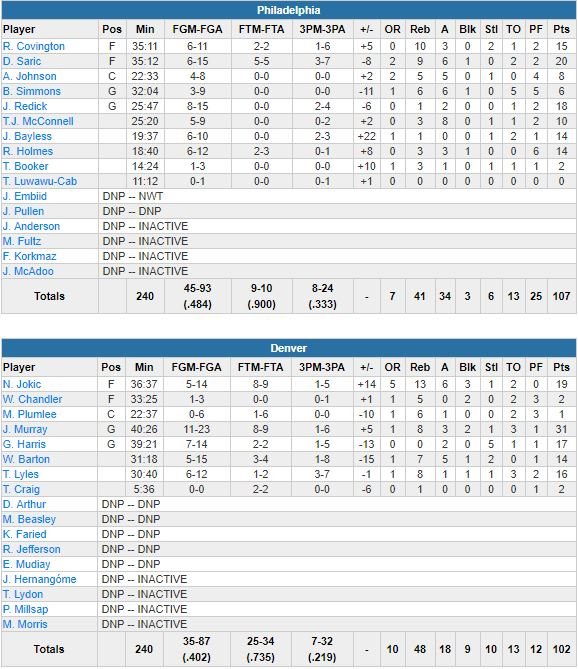 Denver Nuggets – Philadelphia 76ers 102-107