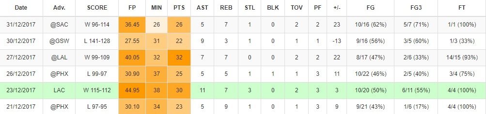 Est-il nécessaire de le présenter ? S’il est bien sûr de loin le joueur de plus cher du pool de joueurs ce soir, avec ses 40.08 FP de moyenne il enregistre 12 FP de plus que n’importe quel joueur ce soir ! Au vu du budget de 90 millions de dollars ce soir, vous pouvez foncer sur le King, qui aura à cœur de remettre les siens sur les bons rails face aux Blazers. Si ces derniers défendent plutôt bien cette saison, ils n’auront sans doute pas les armes pour ralentir le quadruple MVP. Vous pouvez espérer un match à au moins 40 FP de sa part.