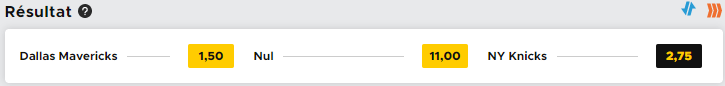 Pour le pari un peu moins risqué, on va miser sur une victoire des Knicks à Dallas. Les Mavs partent favoris de ce match au vu de leur forme, mais les New Yorkais, malgré leur passage difficile, ont des armes à faire valoir, notamment Kristaps Porzingis pour gêner les Texans et peut-être accrocher une victoire. C’est un risque à prendre au vu de la cote de 2.75 (elle peut varier). On va miser, ce qui nous donne un gain potentiel de 175€.