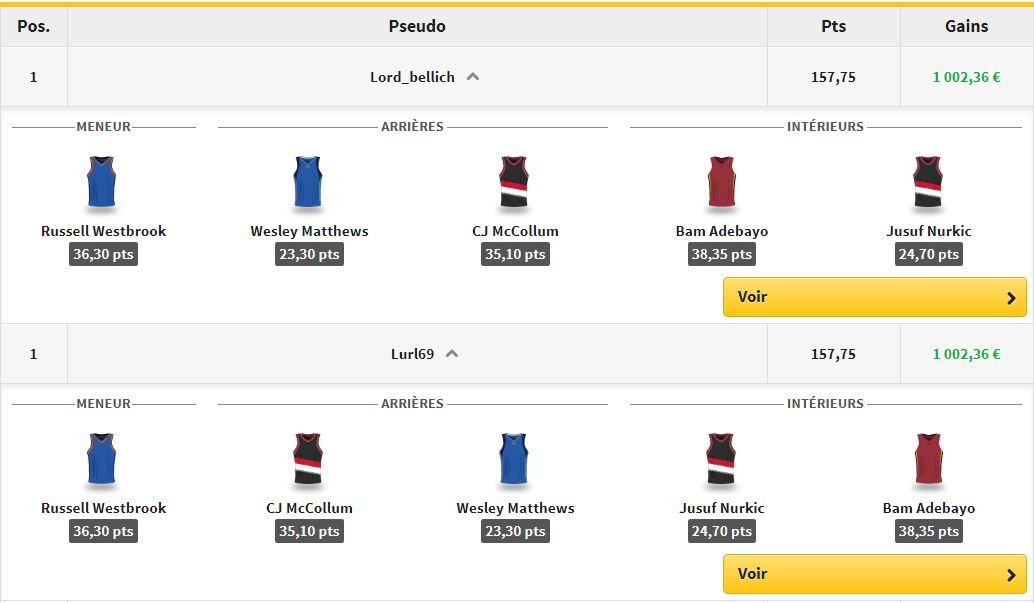 - Vous disposez d’un budget virtuel pour composer votre 5 majeur idéal de la soirée (1 meneur, 2 arrières, 2 intérieurs)