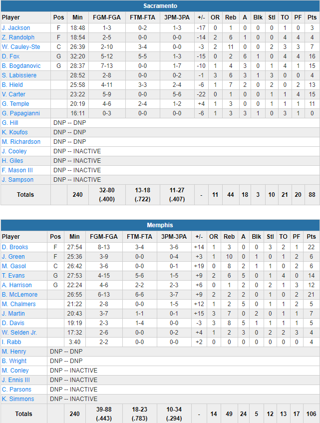 Memphis Grizzlies – Sacramento Kings 106-88