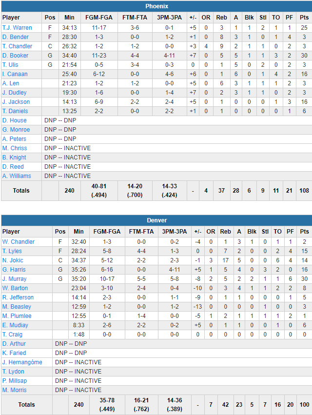 Denver Nuggets – Phoenix Suns 100-108