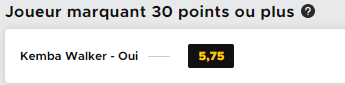 En vous inscrivant ici chez notre partenaire Betclic, votre premier pari est remboursé à hauteur de 100€*, pourquoi ne pas en profiter pour flamber un peu puisque vous ne risquez rien. Aujourd’hui on a ciblé un pari sur la performance de Kemba Walker. Le meneur de jeu est au centre des rumeurs et il se dit que Charlotte pourrait l’échanger. Lui veut rester et quelle meilleure façon de montrer à ses dirigeants ce qu’ils pourraient perdre qu’en réalisant un carton face au Heat ? On va donc miser sur une cote à 5.75 (elle peut varier), pour un match à au moins 30 points du meneur, soit un gain potentiel de 475€