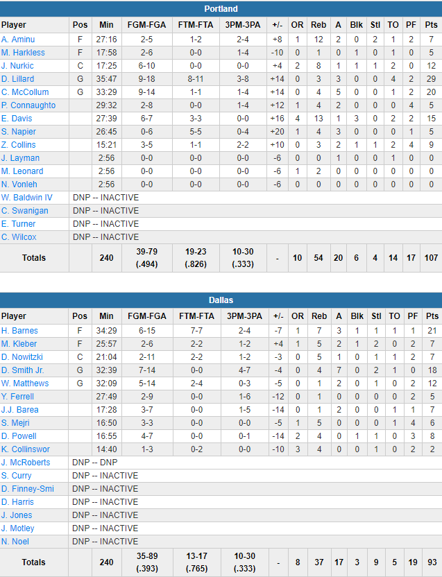 Dallas Mavericks – Portland Trail Blazers 93-107