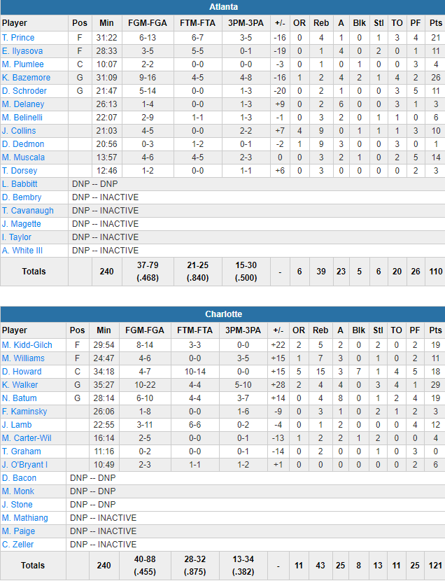 En plus d’un Kemba Walker à 29 points et auteur de deux 3-points clutchs, les Hornets ont bénéficié d’un Dwight Howard des grands soirs en défense cette nuit dans leur victoire contre Atlanta. Le pivot a signé 18 points, 15 rebonds et 7 contres (record en saison) ! Nicolas Batum et Michael Kidd-Gilchrist ont quant à eux terminé à 19 points chacun et hormis un 3ème quart difficile, Charlotte a largement dominé la rencontre, bouclée sur un 12-0 par les joueurs de Steve Clifford.