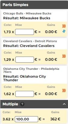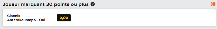 Pour le pari un peu moins risqué, on va miser sur un match à au moins 30 points de Giannis Antetokounmpo. Le Grec a fait un retour tonitruant après une semaine de repos et on peut s’attendre à ce qu’il continue sur sa lancée dans un match important face aux BVulls. Lors des deux précédents matchs il a amrqué 28 et 29 points face aux Bulls. La cote de 2 (elle peut varier) est tentante, on va miser dessus, ce qui nous donne un gain potentiel de 100€.