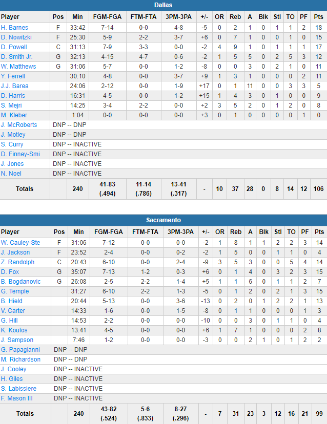 Sacramento Kings – Dallas Mavericks 99-106