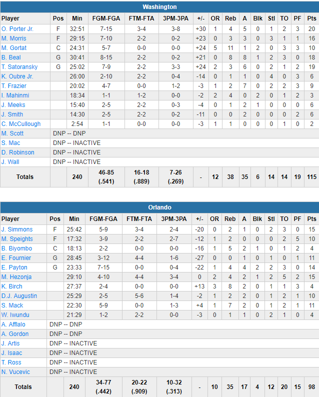 Orlando Magic – Washington Wizards 98-115