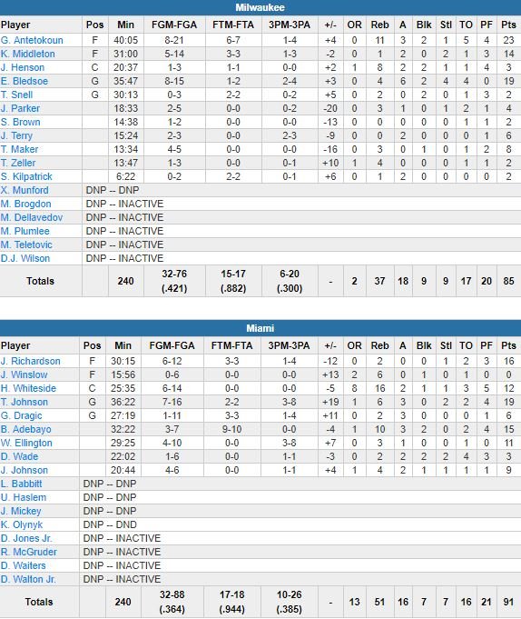 Miami Heat – Milwaukee Bucks 91-85