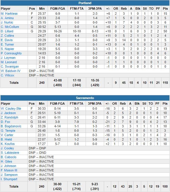Sacramento Kings – Portland Trail Blazers 100-118