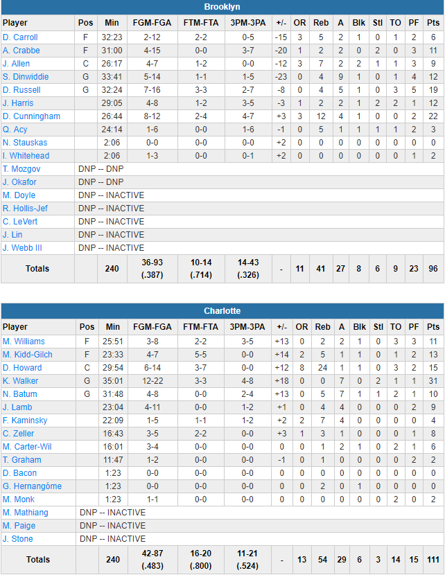 Charlotte Hornets – Brooklyn Nets 111-96