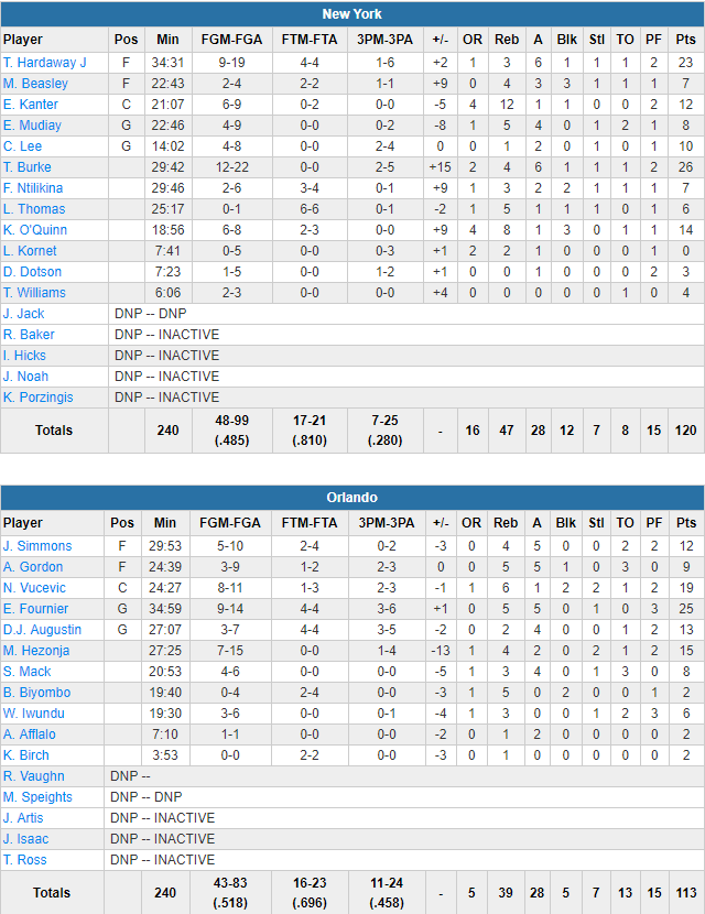Orlando Magic – New York Knicks 113-120