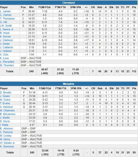À noter : Tyreke Evans (10 passes) et JaMychal Green (10 rebonds) ont chacun marqué 15 points pour Memphis. Marc Gasol a terminé à 14 points et 9 rebonds.