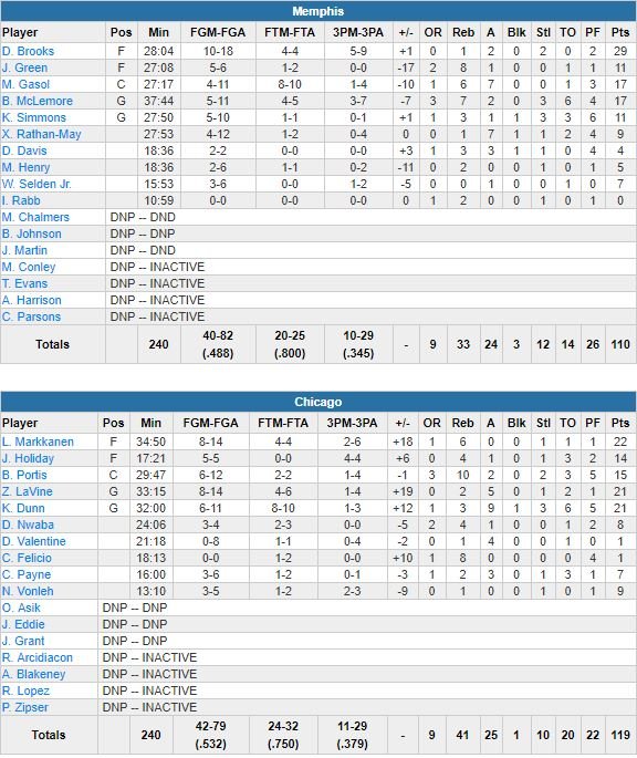 Chicago Bulls – Memphis Grizzlies 119-110