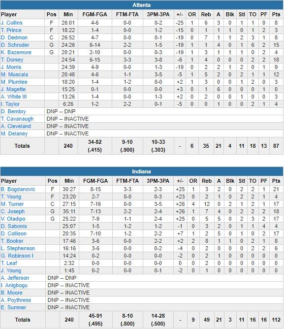 Indiana Pacers – Atlanta Hawks 112-87