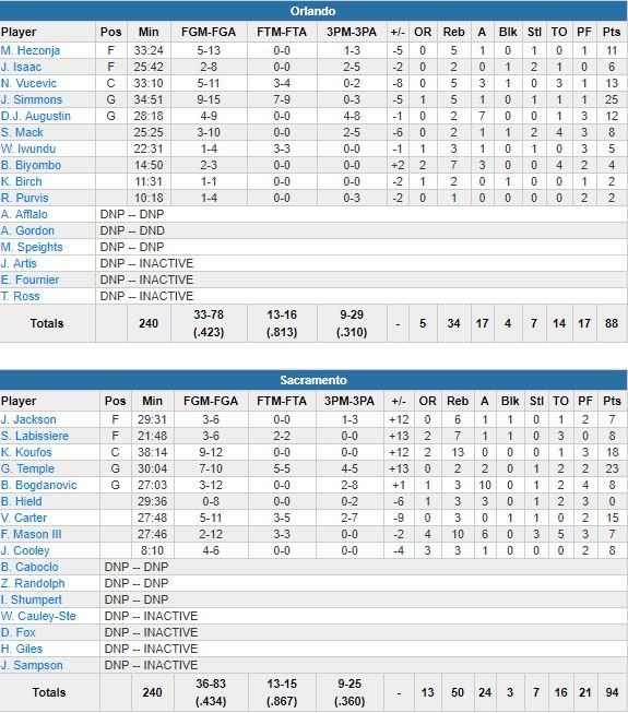 Sacramento Kings – Orlando Magic 94-88