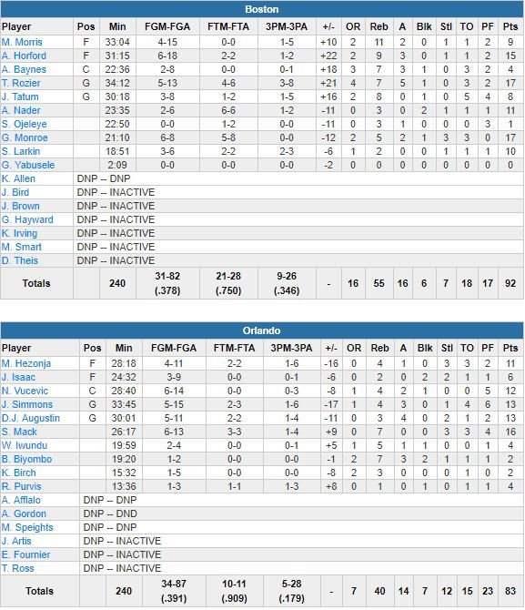 Brad Stevens l’a lui même déclaré en conférence de presse, ce n’était pas beau pour les Celtics hier. Mais la victoire a tout de même été rendez-vous à Orlando, 92-83. Terry Rozier et Greg Monroe ont terminé co-meilleurs marqueurs de l’équipe, qui s’et surtout reposé sur sa rugueuse défense, avec 17 points. De quoi se reprend après des défaites à Indiana et Washington.