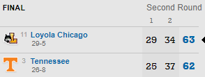 Suite et fin du second tour avec encore des surprises. Tout d’abord Loyola-Chicago réalise encore un upset en éliminant les Volunteers du Tennessee sur un panier à 5 secondes de la fin de Clayton Custer.