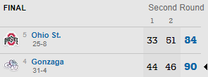 Dans le choc face à Ohio State, Gonzaga de Killian Tillie accède au Sweet 16 en démarrant le match par un 15-0 mais en devant batailler en seconde mi-temps. Tillie a été clutch en début de money time, aidé par Zach Norvell Jr. et Rui Hachimura.