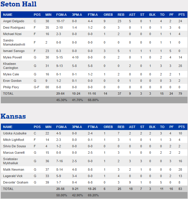 Kansas a galéré mais se qualifie en battant Seton Hall 83-79 grâce à un grand Malik Newman, clutch et auteur de 28 points.