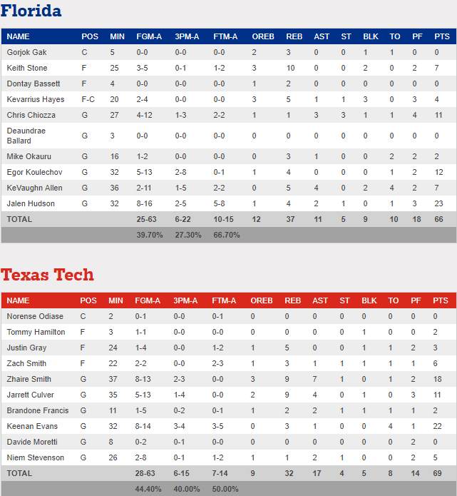 Texas Tech domine Florida en faisant la différence dans les 2 dernières minutes grâce à un panier à 3-ps clutch de Keenan Evans et un alley-oop de Zhaire Smith.
