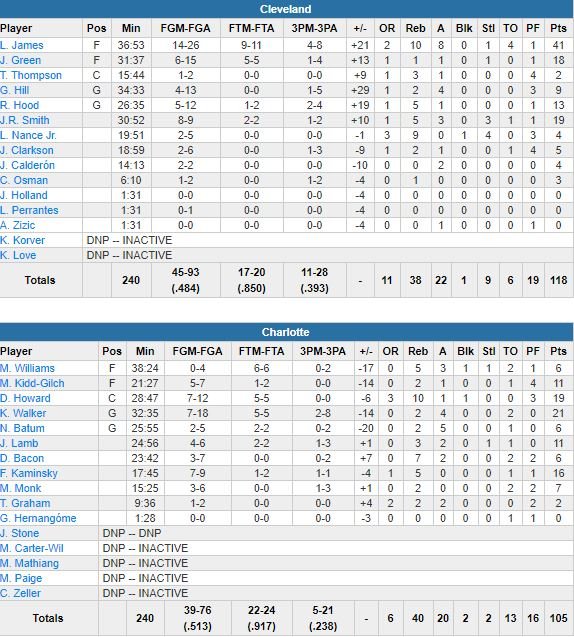 Cleveland avec la manière à Charlotte; Avec une de ses plus grosses perf’ de la saison, LeBron égale le record de Michael Jordan