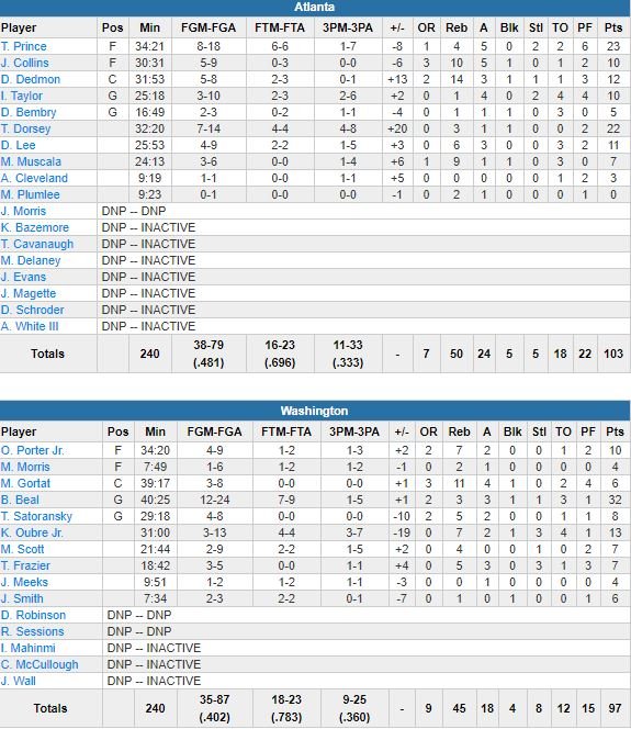 Washington Wizards – Atlanta Hawks 97-103