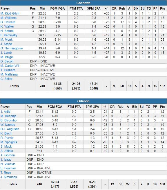 Orlando Magic – Charlotte Hornets 100-137