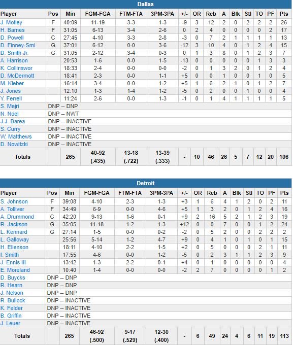 Detroit Pistons – Dallas Mavericks 113-106