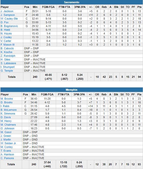 Memphis Grizzlies – Sacramento Kings 93-94